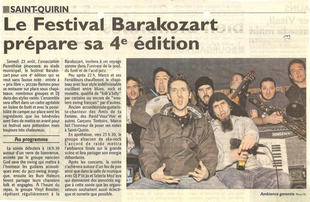 - Samedi 23 Aout 2014 : Festival BARAKOZART 4ème édition, avec à l’affiche :