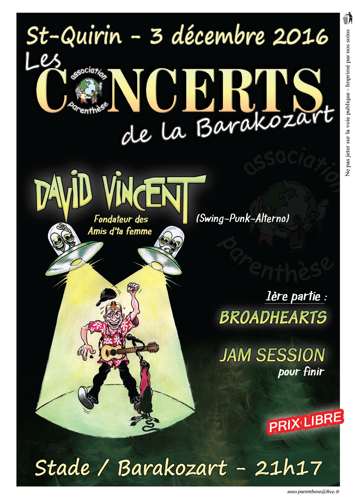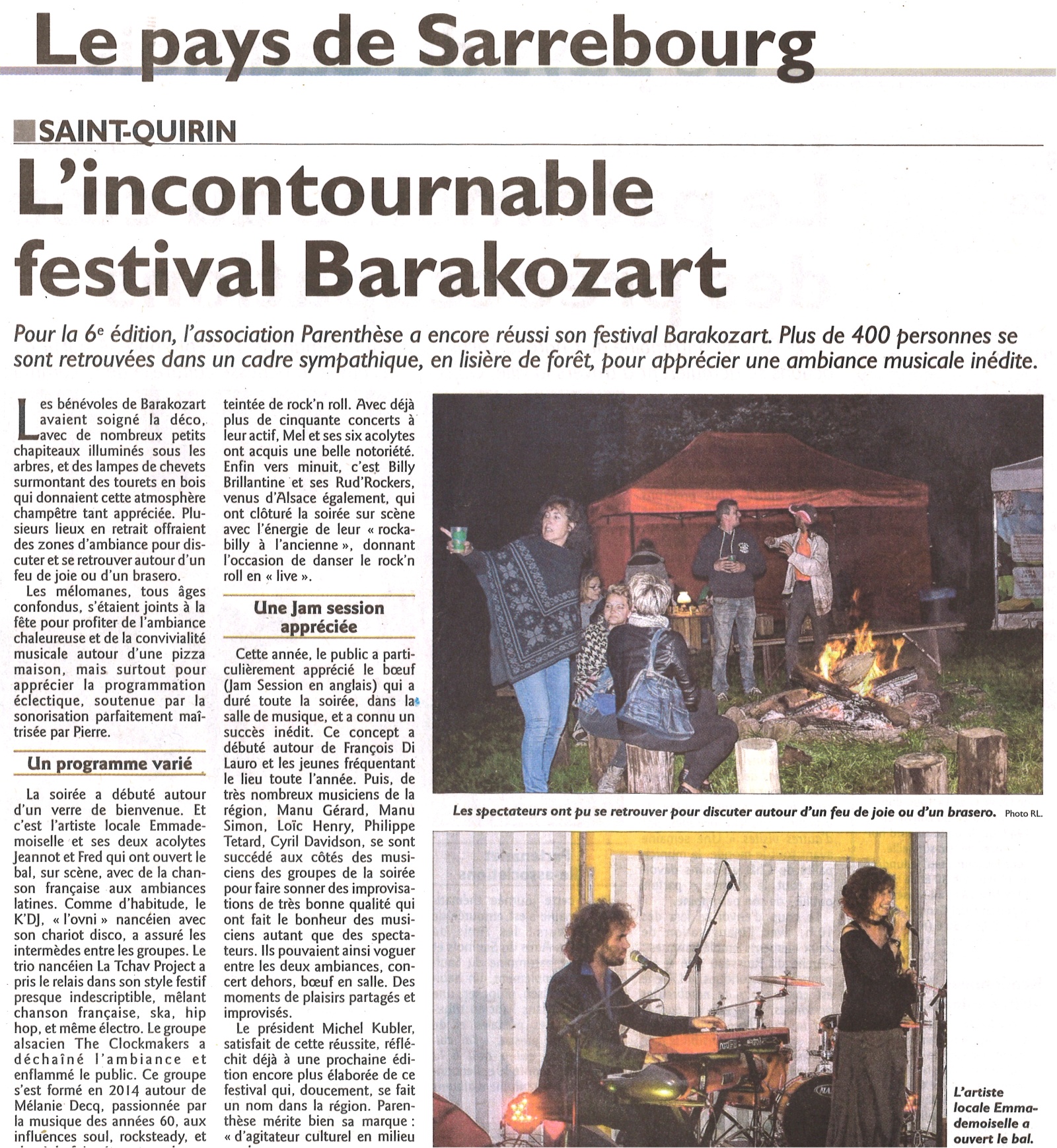 - Samedi 2 Avril 2016 : Soirée Concerts à la BARAKOZART, avec à l’affiche :